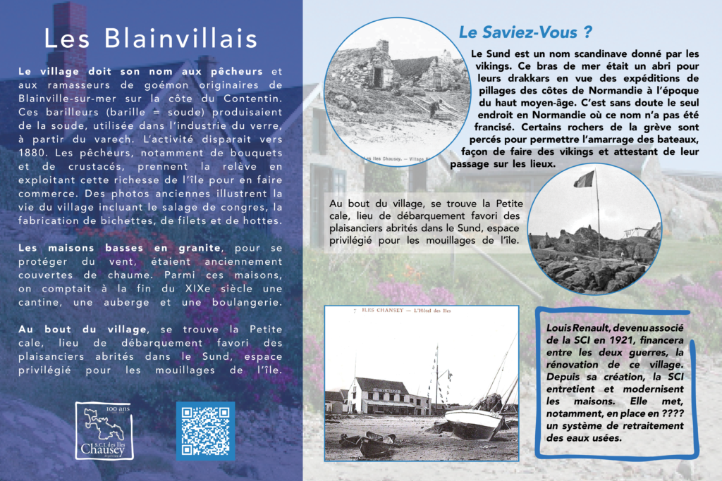 Ce « village » doit son nom aux pêcheurs et aux ramasseurs de goémon originaires de Blainville-sur-Mer sur la côte du Cotentin. Ces barilleurs produisaient de la soude, ou barille, utilisée dans l’industrie du verre, à partir du varech. L’activité disparaît vers 1880. Les pêcheurs, notamment de bouquets et de crustacés, prennent la relève en exploitant cette richesse de l’île pour en faire commerce. Des photos anciennes illustrent la vie du village incluant le salage de congres, la fabrication de bichettes, de filets et de hottes.